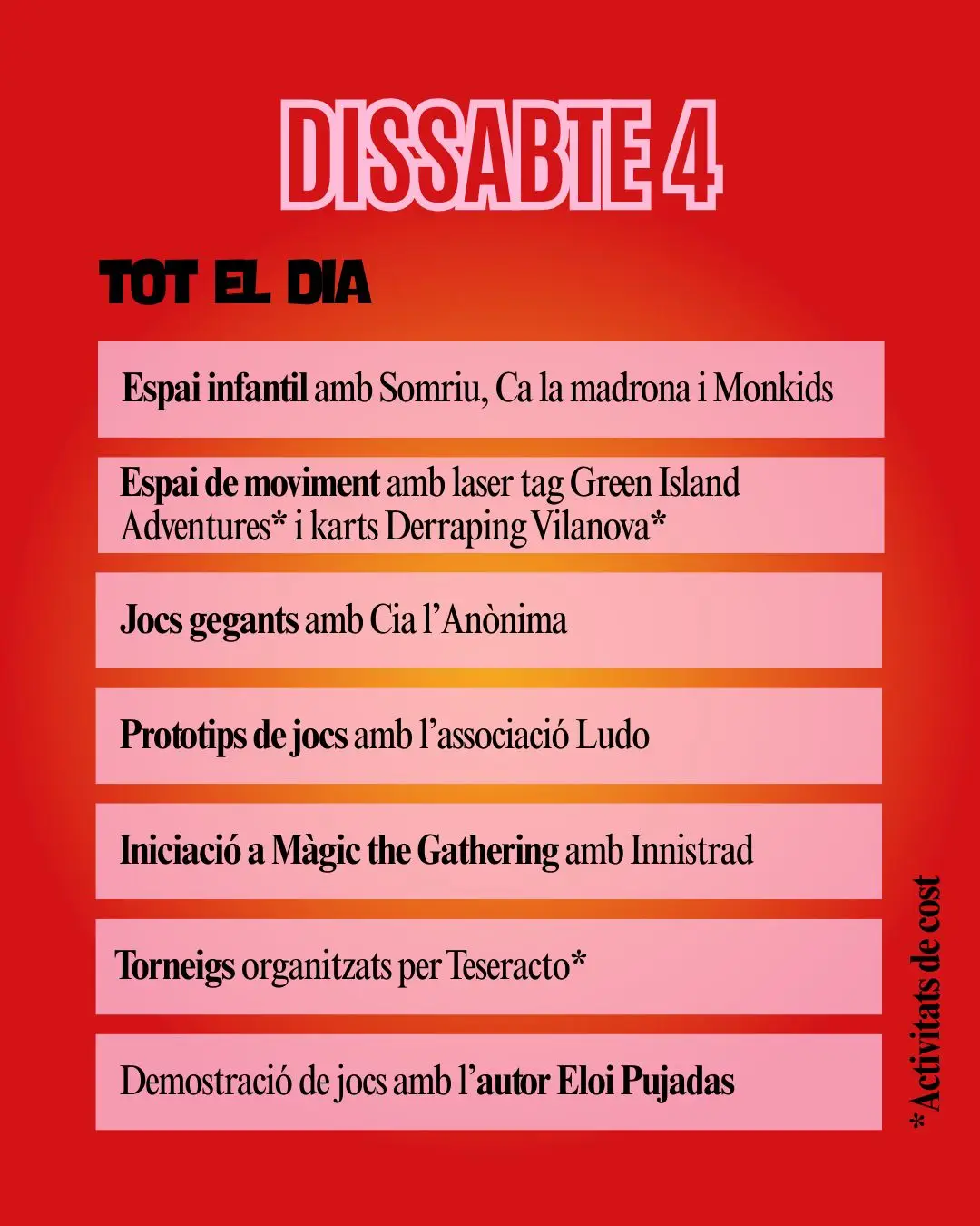 Els festival del joc del Penedès, Vilajuga, és la llar d’activitats molt diverses, des d’espais com la nostra ludoteca de lliure accés, fins a activitats que requereixen d’una inscripció, bé sigui prèvia o durant les jornades.
